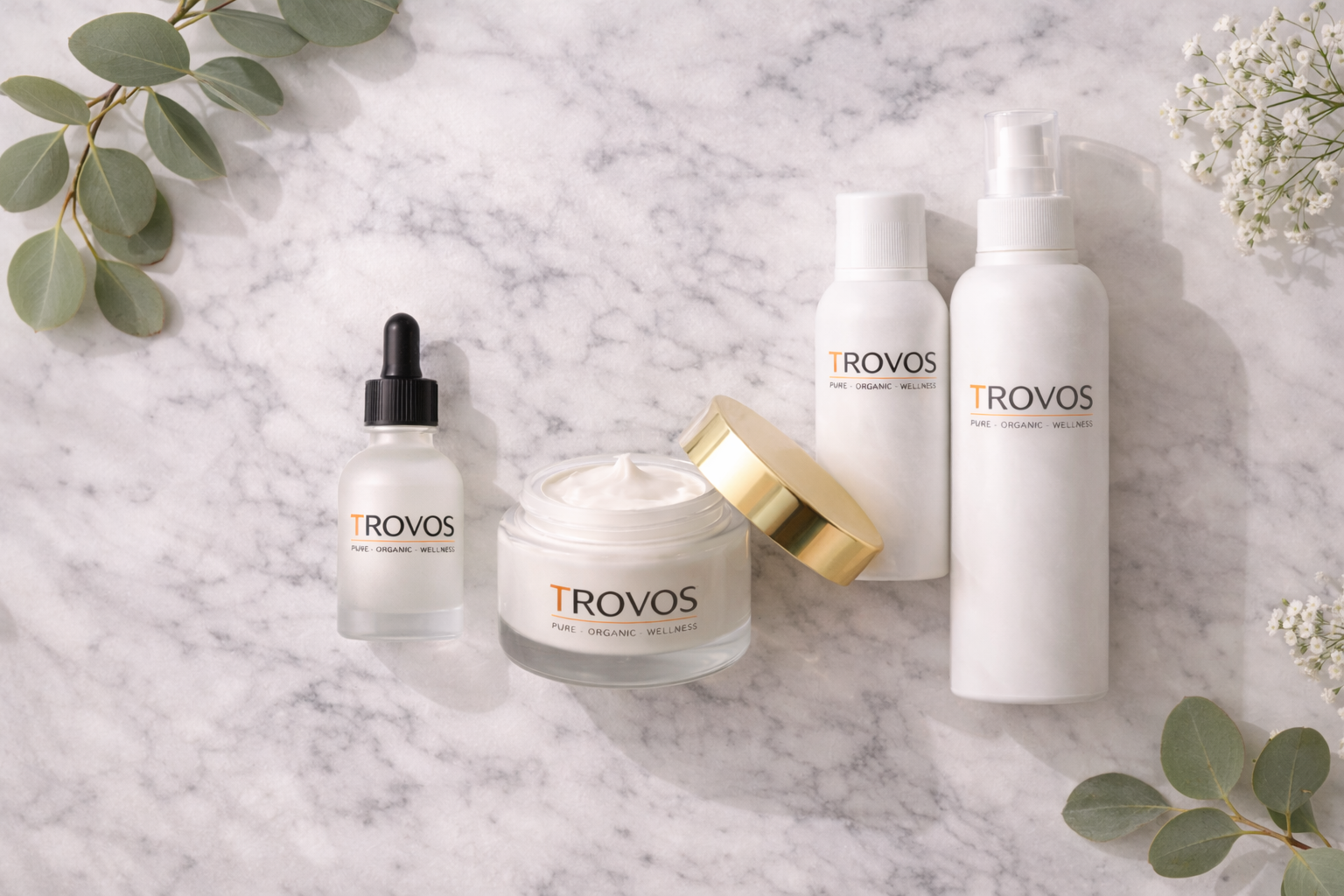TROVOS embodies a warm, modern identity — where refined aesthetics meet intentional beauty and everyday care. We believe the products you choose for your daily routine say something about how you care for yourself. That's why everything we offer is chosen with intention, quality, and you in mind.